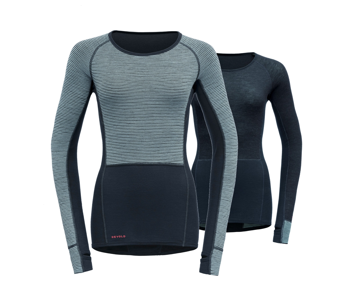 Koszulka damska Tuvegga z serii Devold Performence, to zaawansowana i innowacyjna dwustronna odzież, która zapewnia dwie klasy termiczne w zależności od strony noszenia. Tuvegga łączy w sobie trzy różne materiały, między innymi panele 3D. Idealnie sprawdzi się podczas aktywności fizycznej w chłodnych i zmiennych warunkach atmosferycznych. Na stronie gładkiej bardzo dobrze odprowadzi wilgoć i wentyluje. Nałożona panelami 3D do ciała, zapewnia wysoki komfort termiczny, dzięki gromadzeniu ogrzanego ciałem powietrza w specjalnych przestrzeniach pomiędzy skórą a odzieżą. Produkt za swoją innowacyjność wyróżniony nagrodami ISPO Winner Awards and Overall Winner.