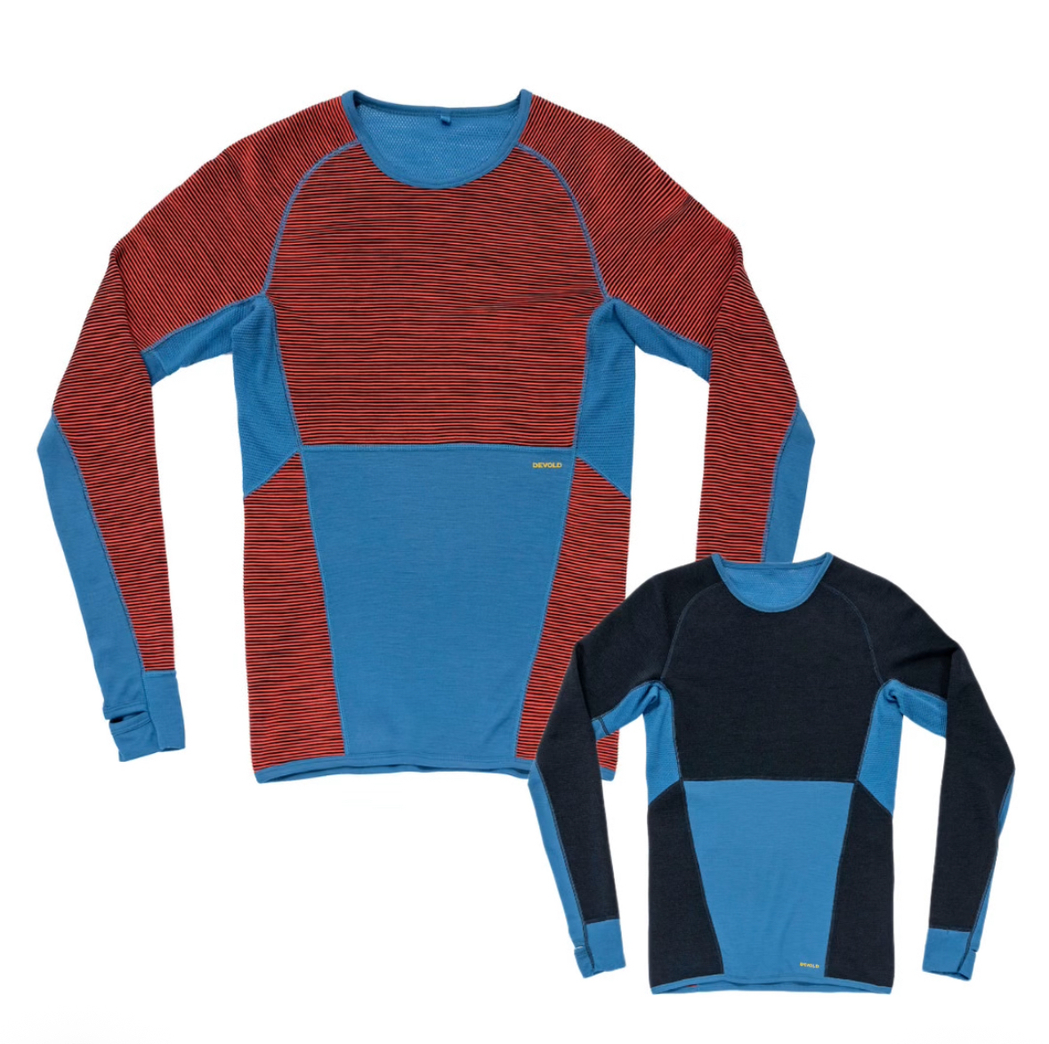 Koszulka męska Tuvegga z serii Devold Performence, to zaawansowana i innowacyjna dwustronna odzież, która zapewnia dwie klasy termiczne w zależności od strony noszenia. Tuvegga łączy w sobie trzy różne materiały, między innymi panele 3D. Idealnie sprawdzi się podczas aktywności fizycznej w chłodnych i zmiennych warunkach atmosferycznych. Na stronie gładkiej bardzo dobrze odprowadzi wilgoć i wentyluje. Nałożona panelami 3D do ciała, zapewnia wysoki komfort termiczny, dzięki gromadzeniu ogrzanego ciałem powietrza w specjalnych przestrzeniach pomiędzy skórą a odzieżą. Produkt za swoją innowacyjność wyróżniony nagrodami ISPO Winner Awards and Overall Winner.Cechy:- Techniczny krój- Siateczkowa konstrukcja tkaniny na plecach- Cieplejsza strona w kolorach granat/niebieski