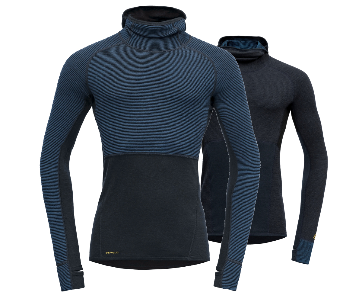 Męska koszulka z kapturem Tuvegga z serii Devold Performence, to zaawansowana i innowacyjna dwustronna odzież, która zapewnia dwie klasy termiczne w zależności od strony noszenia. Tuvegga łączy w sobie trzy różne materiały, między innymi panele 3D. Idealnie sprawdzi się podczas aktywności fizycznej w chłodnych i zmiennych warunkach atmosferycznych. Na stronie gładkiej bardzo dobrze odprowadzi wilgoć i wentyluje. Nałożona panelami 3D do ciała, zapewnia wysoki komfort termiczny, dzięki gromadzeniu ogrzanego ciałem powietrza w specjalnych przestrzeniach pomiędzy skórą a odzieżą. Produkt za swoją innowacyjność wyróżniony nagrodami ISPO Winner Awards and Overall Winner.